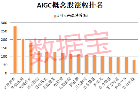 据统计,截至12月9日,涉及AIGC的概念股接近200只,合计A股市值接近3万亿元。今年以来有12只概念股累计涨幅翻倍,包括豆神教育、华信永道、安硕信息、福石控股、贝仕达克等。豆神教育累计涨幅279.64%,高居榜首。该公司始终致力于持续深化人工智能生成内容(AIGC)技术在业务中的应用,已于10月30日正式发布全新超拟人AI智教产品。