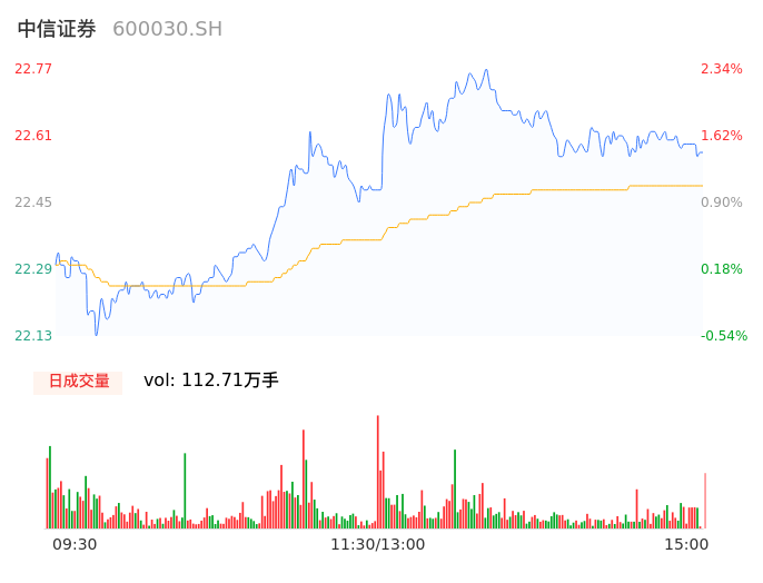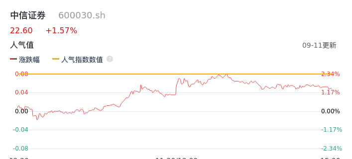 09月11日,中信证券收报22.60,股价涨幅1.57%,成交金额25.35亿元,换手率0.99%。