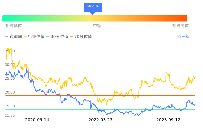中信证券当前市盈率PETTM为15.49,在所属的证券中,市盈率PETTM排7名。前5名分别为国泰君安PETTM12.18、华泰证券PETTM12.32、国信证券PETTM13.88、广发证券PETTM14.02、中国银河PETTM14.33。从PETTM估值走势数据来看,中信证券当前市盈率PETTM为15.49,超过近3年50.21%的历史数据。