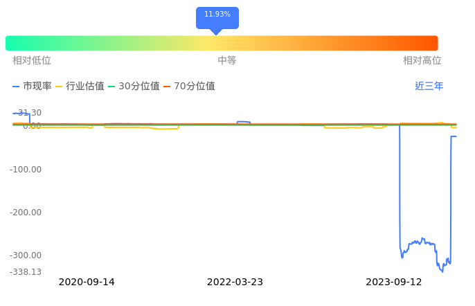 中信证券当前市现率为-23.49,在所属的证券中,市现率排23,前5名分别为、申万宏源市现率1.82、兴业证券市现率2.69、东北证券市现率3.43、广发证券市现率3.88、国泰君安市现率4.69。中信证券当前市现率为-23.49,超过近3年11.93%的历史数据。