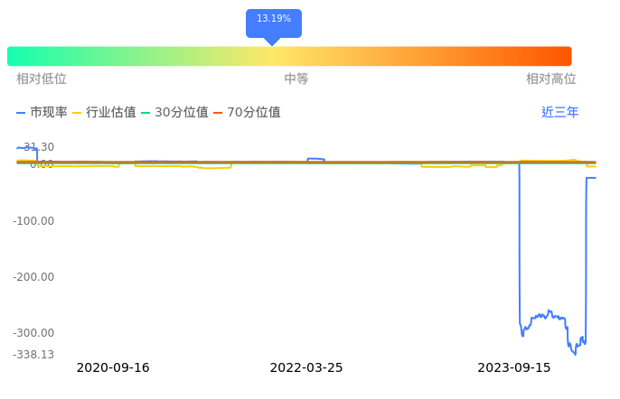 中信证券当前市现率为-23.14,在所属的证券中,市现率排23,前5名分别为、申万宏源市现率1.82、兴业证券市现率2.66、东北证券市现率3.36、广发证券市现率3.81、国泰君安市现率4.64。中信证券当前市现率为-23.14,超过近3年13.19%的历史数据。