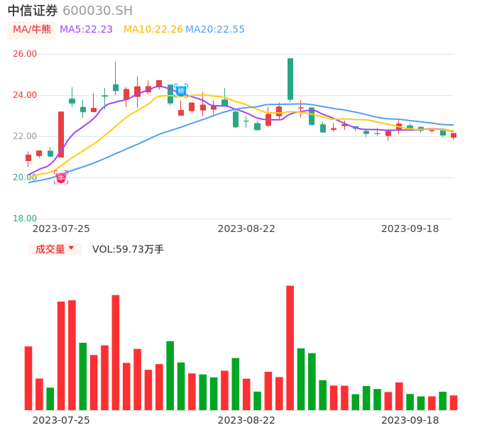 值得注意的是:2023年09月信达证券的王舫朝/冉兆邦分析师,首次发布关于中信证券的研究报告,标题为:中信证券(600030):投行、信用表现亮眼 看好杠杆提增空间。