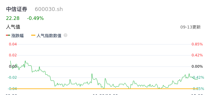 09月13日,中信证券收报22.28,股价涨幅-0.49%,成交金额12.45亿元,换手率0.49%。