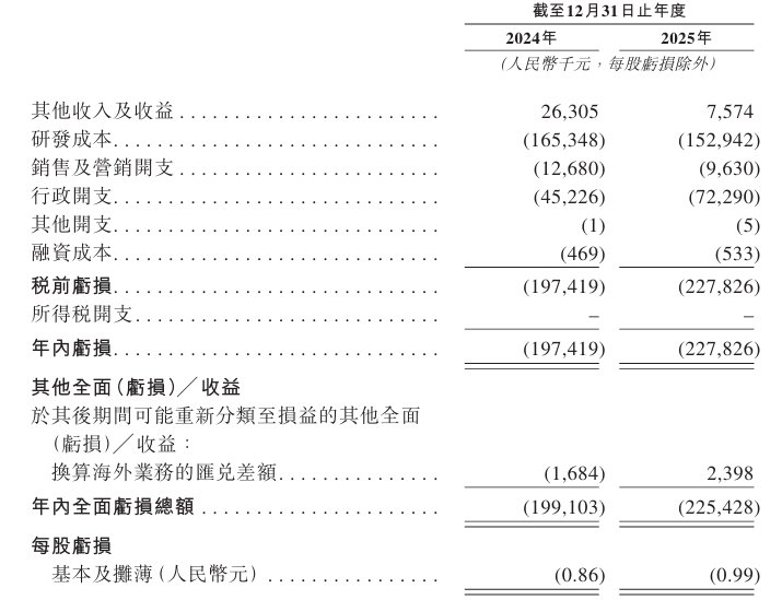 2024年、2025年,该公司年内全面亏损总额分别约为1.99亿元、2.25亿元人民币。