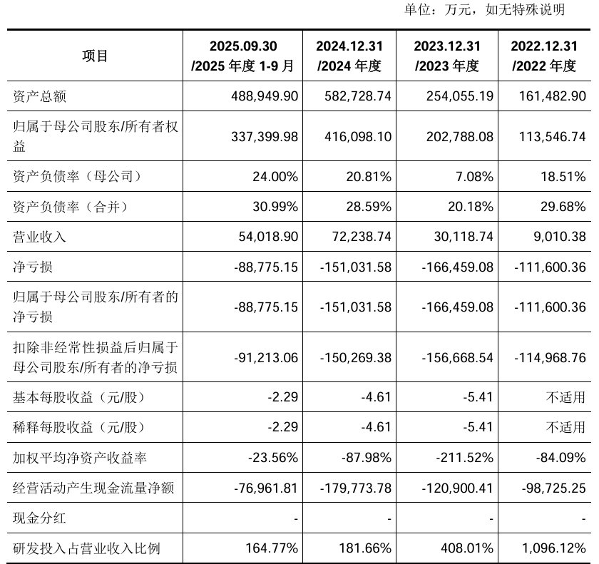 财务方面,于2022年度、2023年度、2024年度、2025年度1-9月,公司实现营业收入分别约9010.38万元、3.01亿元、7.22亿元、5.40亿元;同期,录得净亏损分别约11.16亿元、16.65亿元、15.10亿元、8.88亿元。
