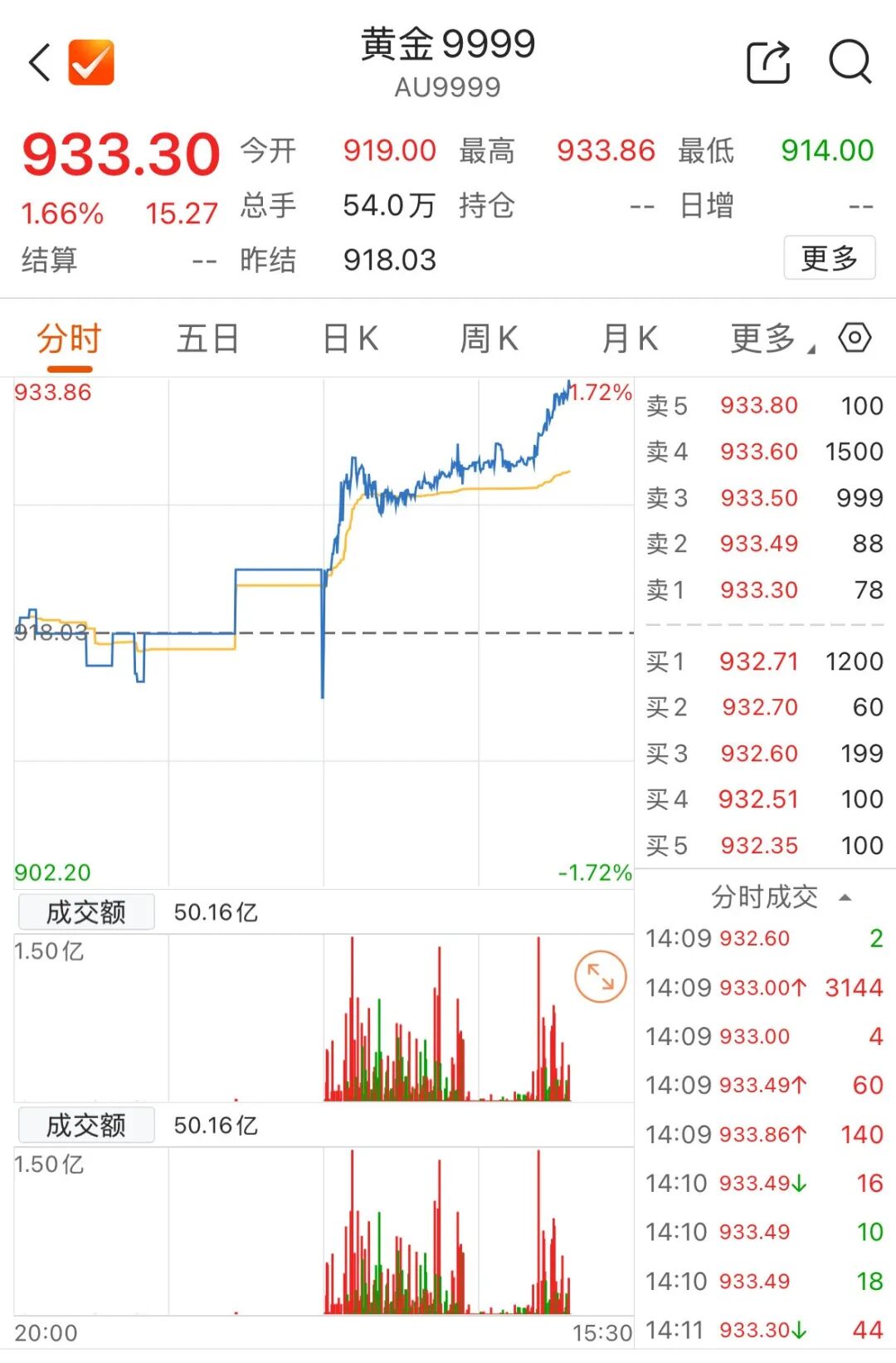 截至发稿,国际、国内金价双双拉升,伦敦现货黄金报4070.2美元/盎司,COMEX黄金报4076美元/盎司,上海黄金交易所现货黄金(Au99.99)价报933.30元/克。
