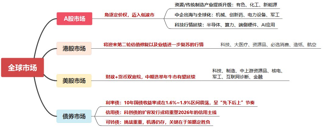 全球市场:2026年全球经济或进入更柔和而明朗的增长基调,美国经济应能温和增长、欧元区内需有望修复、日本表现或不温不火,财政扩张料将支持经济动能。美联储独立性与美元信用是资产配置的核心影响因素。