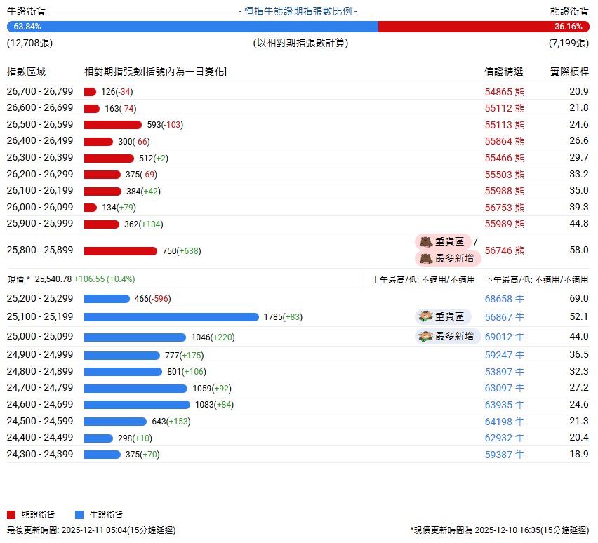 恒指牛熊街货比(64:36)|12月11日