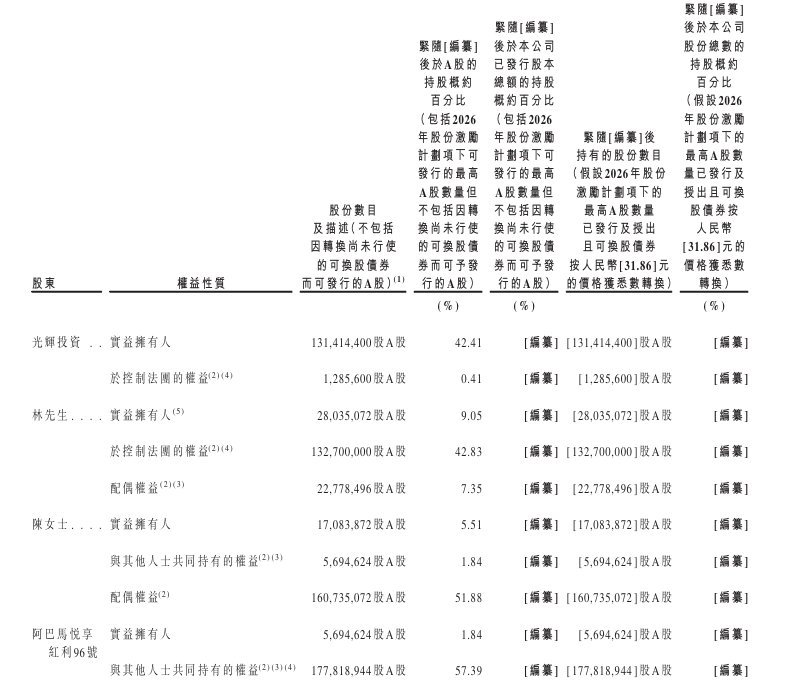 截至最后实际可行日期,公司股份回购账户中持有已回购的1,285,600股A股,约占已发行A股总数的0.42%。截至最后实际可行日期,林先生、陈女士、光辉投资及阿巴马悦享红利96号直接及间接控制公司股东大会三分之一以上的投票权,并将被视为于公司持有的该等已回购A股中拥有权益。