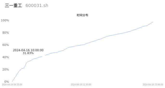 600031三一重工2024年04月16日成交91.05万手,成交金额14.07亿元,相较昨日缩量13.48万手,换手率1.08%,成交清淡。