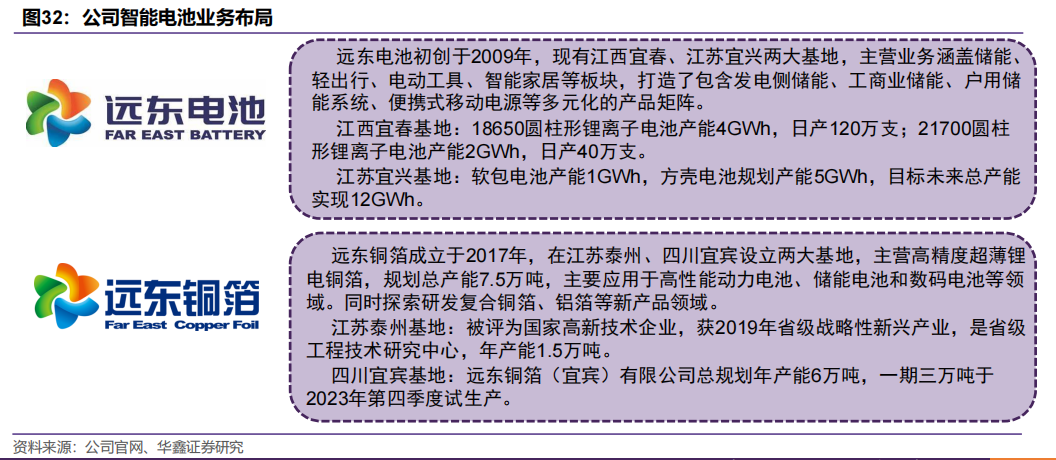 公司智能电池业务包括电池和铜箔两个板块,其中电池业务建立了从电芯-模组-电池系统-储能系统的全产业链布局,铜箔业务是国内领先的高精度超薄锂电铜箔企业。