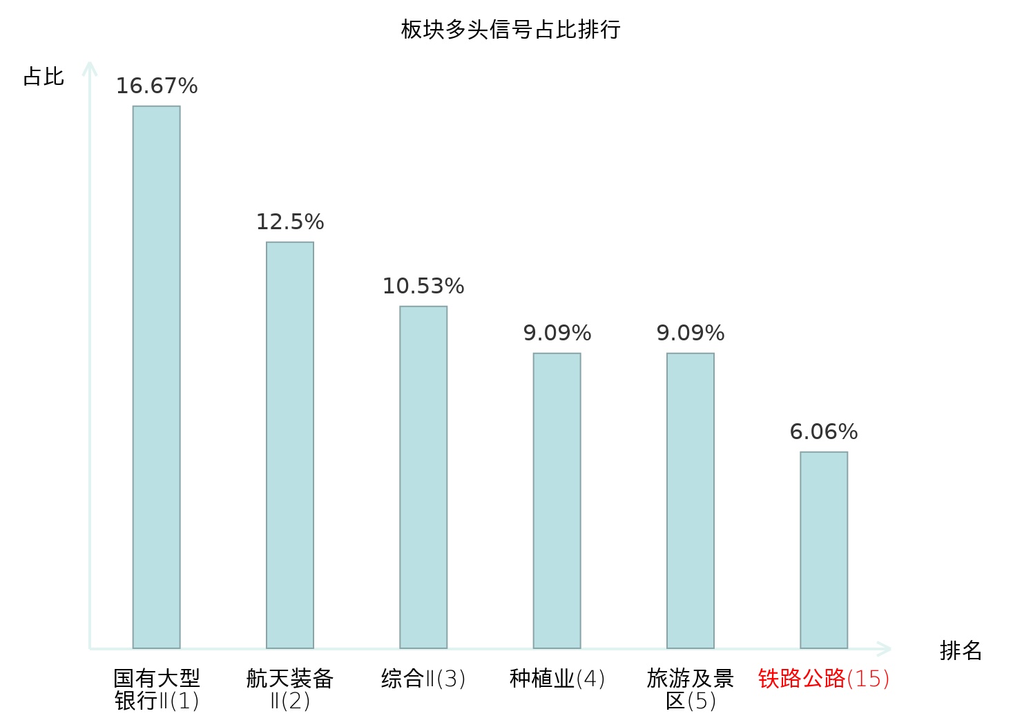 全市场所有行业板块中主力多头信号占比排名中,国有大型银行Ⅱ板块位居第一。国有大型银行Ⅱ板块名次提升最快,较昨日上升123位。