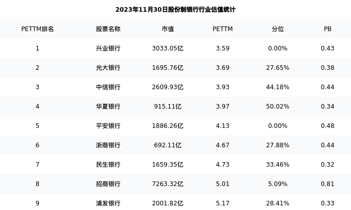 从估值角度看:招商银行最新市盈率PETTM为5.01,在行业内排名8/9,处于5.09分位。