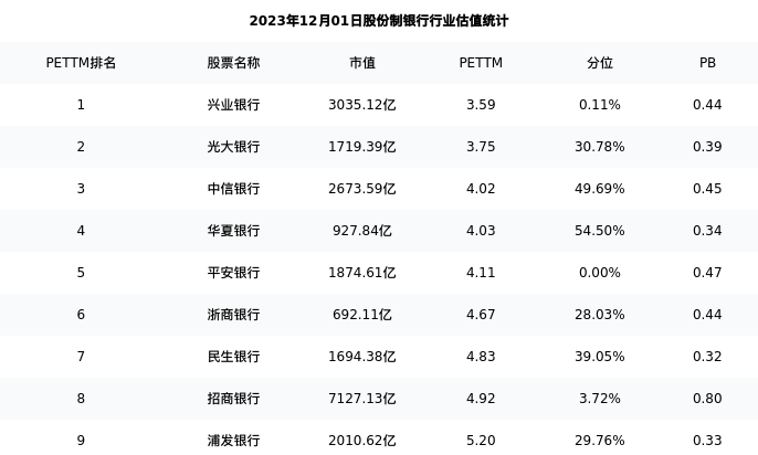 从估值角度看:招商银行最新市盈率PETTM为4.92,在行业内排名8/9,处于3.72分位。