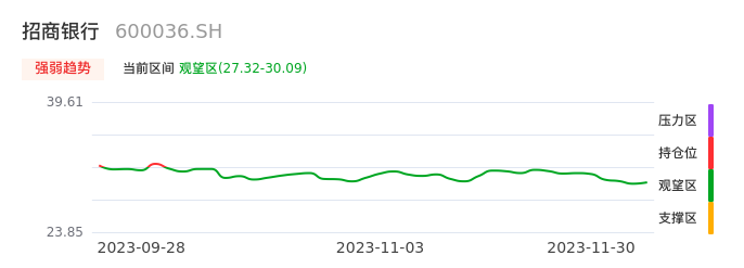 11月30日,招商银行收报28.79,股价涨幅-0.03%,成交金额15.85亿元,换手率0.27%。