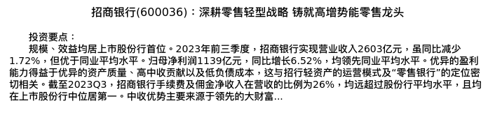 值得注意的是:2023年11月华福证券的郭其伟/谢洁仪分析师,首次发布关于招商银行的研究报告,标题为:招商银行(600036):深耕零售轻型战略 铸就高增势能零售龙头。