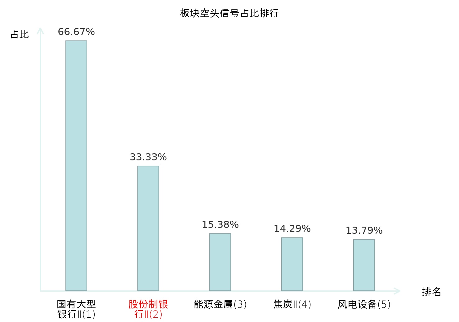 全市场所有行业板块中主力空头信号占比排名中,国有大型银行Ⅱ板块位居第一。风电设备板块名次提升最快,较昨日上升126位。
