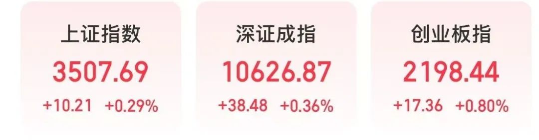 截至上午收盘,上证指数上涨0.29%,报3507.69点,深证成指上涨0.36%,创业板指上涨0.8%。