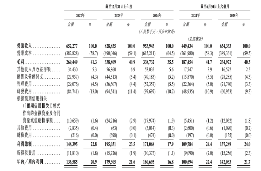 从营收表现来看,2022年至2025年上半年各期期末,芯碁微装来自五大客户的营业收入合计占比分别约为28.0%、23.5%、30.2%及46.9%;同期来自最大单一客户的营业收入占比,则分别为8.6%、7.4%、7.8%及19.7%。
