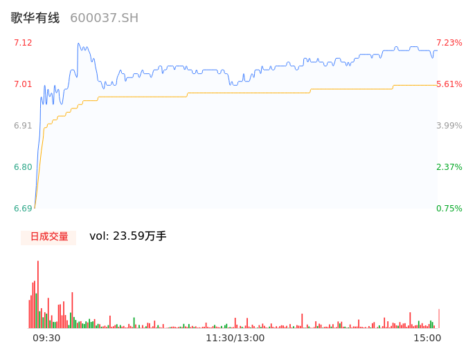 04月29日,歌华有线收报7.10,股价涨幅6.93%,成交金额1.65亿元,换手率1.69%。