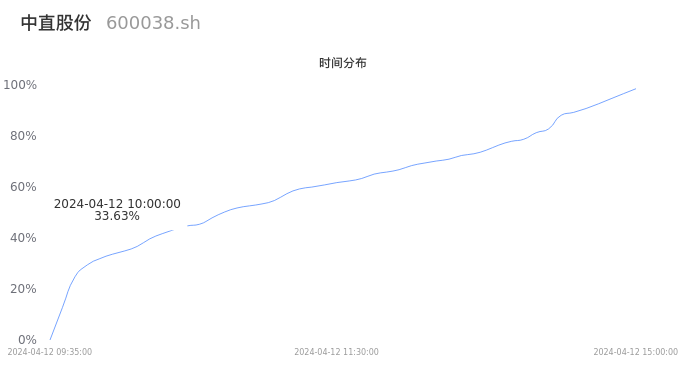 600038中直股份2024年04月12日成交5.67万手,成交金额2.16亿元,相较昨日缩量3.54万手,换手率0.96%,成交清淡。