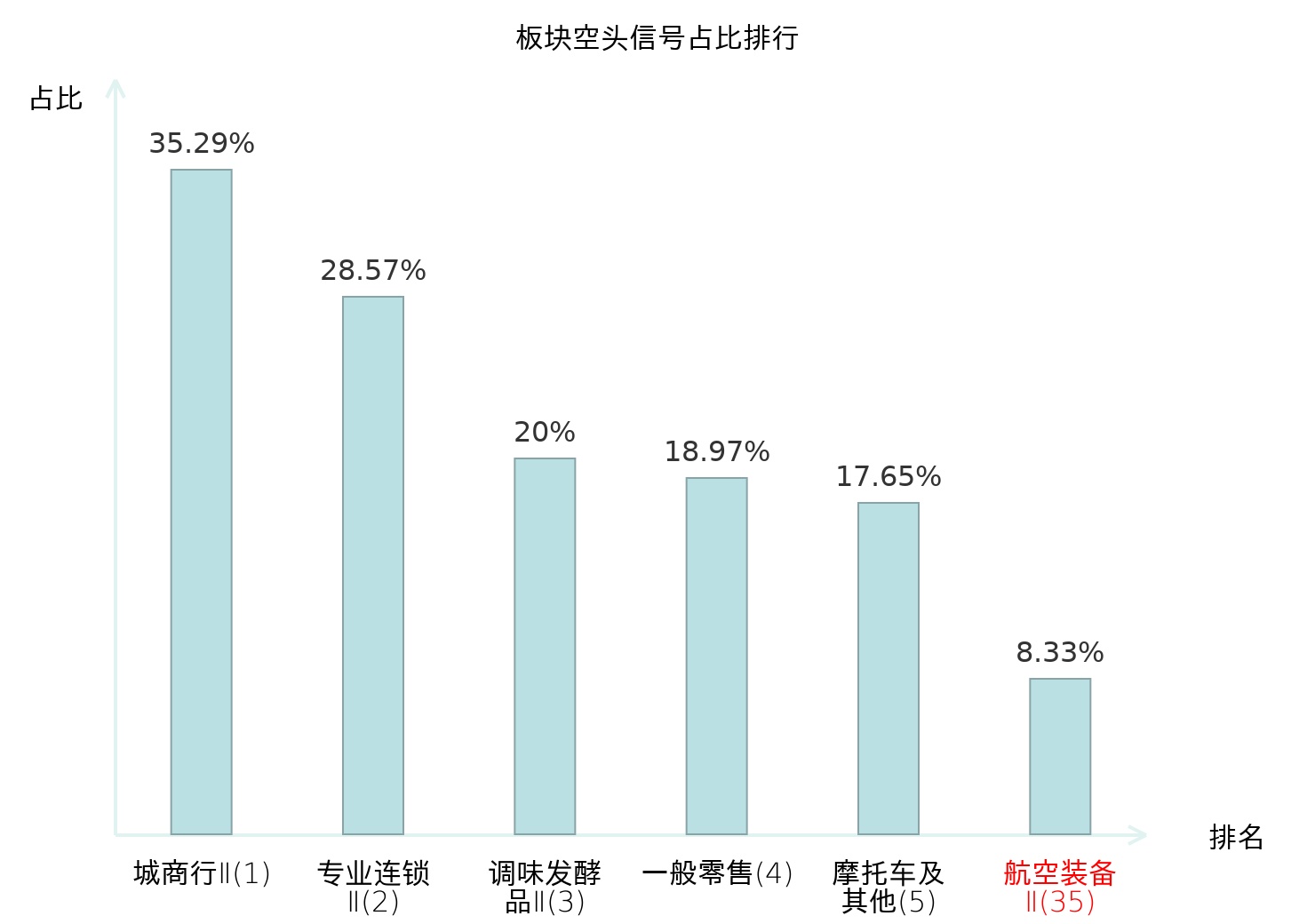 全市场所有行业板块中主力空头信号占比排名中,城商行Ⅱ板块位居第一。炼化及贸易板块名次提升最快,较昨日上升96位。