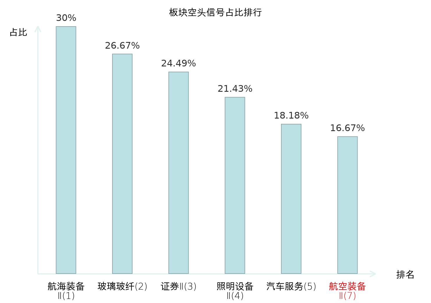 全市场所有行业板块中主力空头信号占比排名中,航海装备Ⅱ板块位居第一。证券Ⅱ板块名次提升最快,较昨日上升125位。