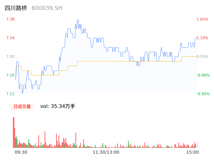04月24日,四川路桥收报7.34,股价涨幅1.10%,成交金额2.58亿元,换手率0.53%。