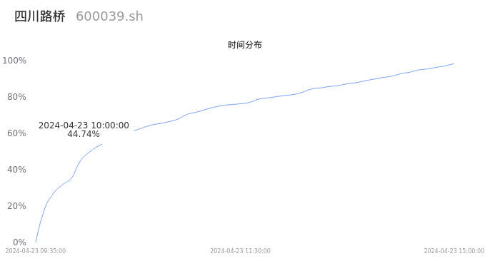 根据成交分布分析,该股票当天放量成交,成交清淡。时间上看,早盘前半小时成交量占据当天总成交量的44.74%;价格上看,成交呈现中间峰。成交分布分析主要研究股票成交的分布特性,不具有预测功能,请知悉。