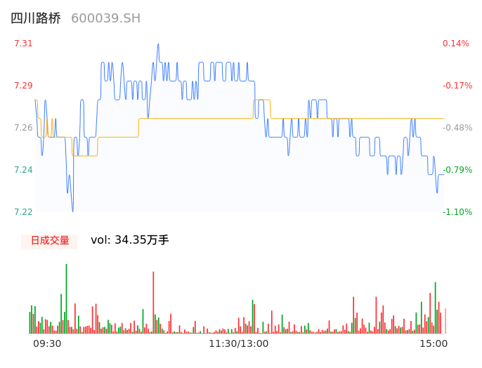 04月29日,四川路桥收报7.24,股价涨幅-0.82%,成交金额2.50亿元,换手率0.51%。
