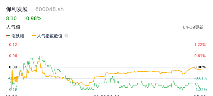 04月19日,保利发展收报8.10,股价涨幅-0.98%,成交金额4.92亿元,换手率0.51%。