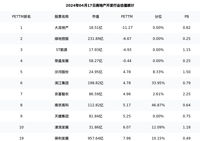 从估值角度看:保利发展最新市盈率PETTM为7.96,在行业内排名16/97,处于10.15分位。