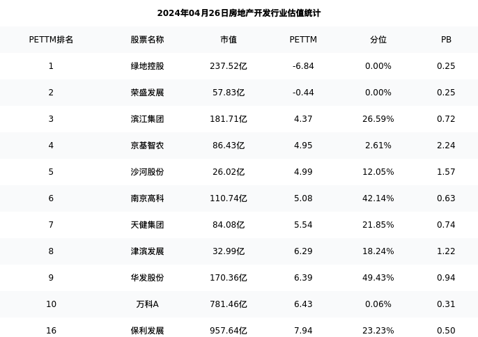 从估值角度看:保利发展最新市盈率PETTM为7.94,在行业内排名15/97,处于23.23分位。