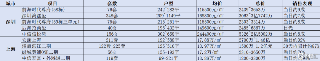 12月深圳中信城开信悦湾156套302~658平大户型,均价约24.4万,总价约5326~2亿5002万,开盘两小时销售约100 亿元。
