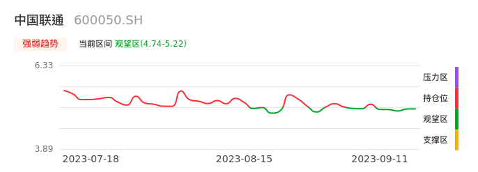 我们来看一下该股的九方特色指标强弱趋势的情况:中国联通自09月05日从持仓区下穿到观望区。股价近期持续下跌后,短期出现止跌迹象。后续重点关注能否再次站上多空分界点:5.22元。如未能有效突破则可能进入新一轮空头行情。
