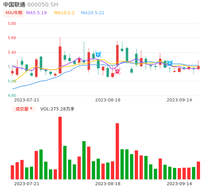 09月14日,中国联通收报5.21,股价涨幅0.77%,成交金额14.38亿元,换手率0.89%。