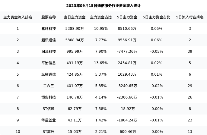 从主力资金流向来看,通信服务行业今日主力资金流入30.72亿元,在所有申万二级行业中排名:55/131。