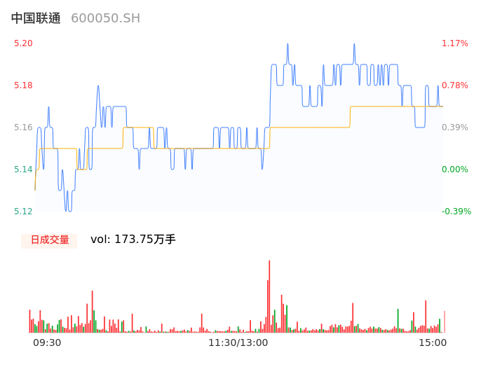 09月08日,中国联通收报5.18,股价涨幅0.78%,成交金额8.98亿元,换手率0.56%。