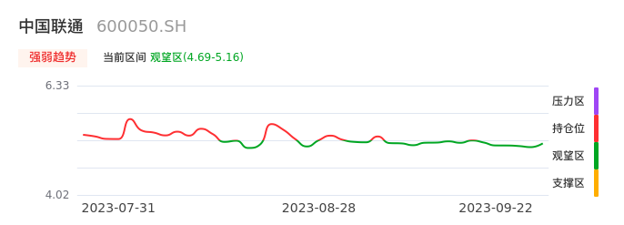 我们来看一下该股的九方特色指标强弱趋势的情况:中国联通自09月05日从持仓区下穿到观望区。股价近期持续下跌后,短期出现止跌迹象。后续重点关注能否再次站上多空分界点:5.16元。如未能有效突破则可能进入新一轮空头行情。