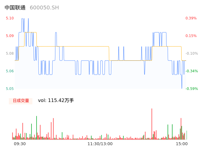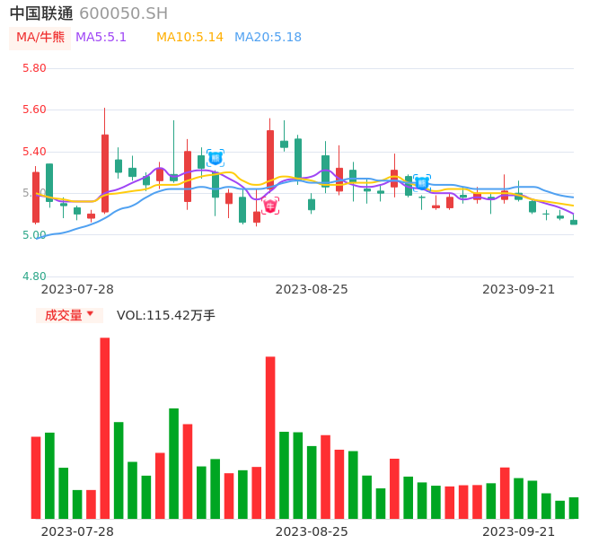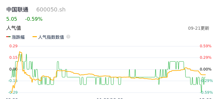 09月21日,中国联通收报5.05,股价涨幅-0.59%,成交金额5.86亿元,换手率0.37%。