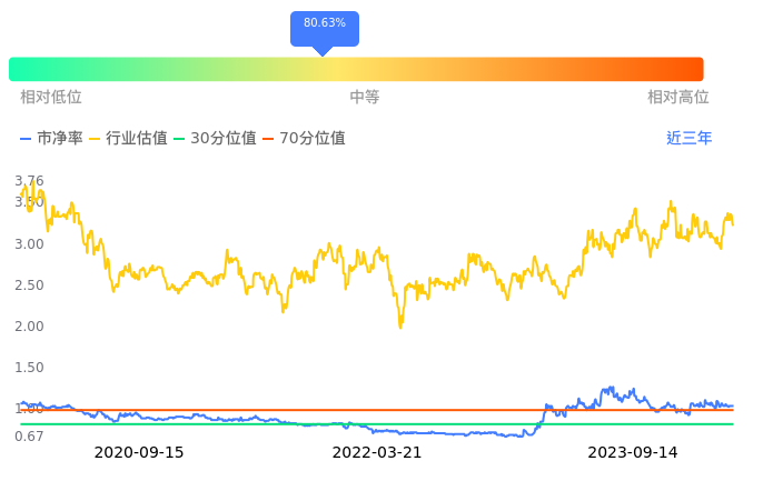 2023年09月14日,中国联通上涨0.77%收于5.21,今日成交金额14.38亿元。下文将从市盈率PETTM、市净率PB、市现率3个角度去分析公司估值情况。