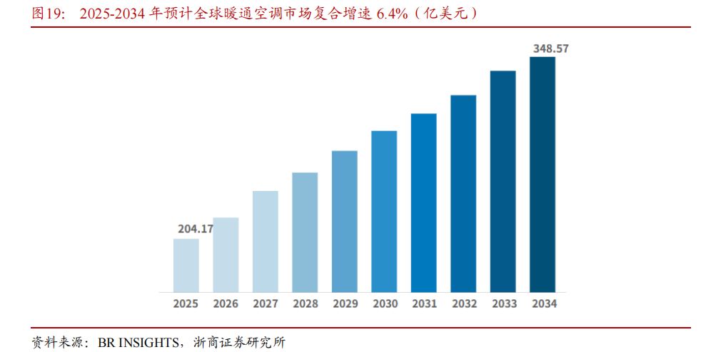 AI算力需求激增推动数据中心建设加速,数据中心暖通空调市场快速增长,预计从2024年的253亿美元增长到2032年的463亿美元,复合增速7.9%。
