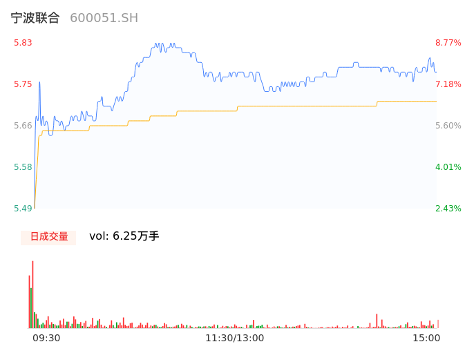 04月17日,宁波联合收报5.77,股价涨幅7.65%,成交金额3571.21万元,换手率2.01%。