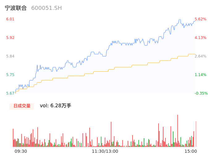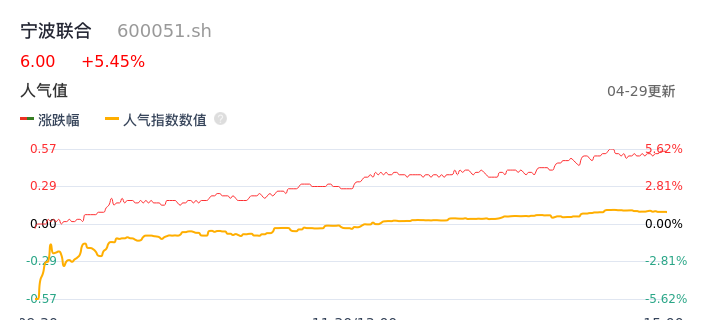 04月29日,宁波联合收报6.00,股价涨幅5.45%,成交金额3677.95万元,换手率2.02%。