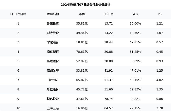 宁波联合最新报告期数据为一季度,下表汇总了综合行业内市值靠前的公司一季度主要经营数据