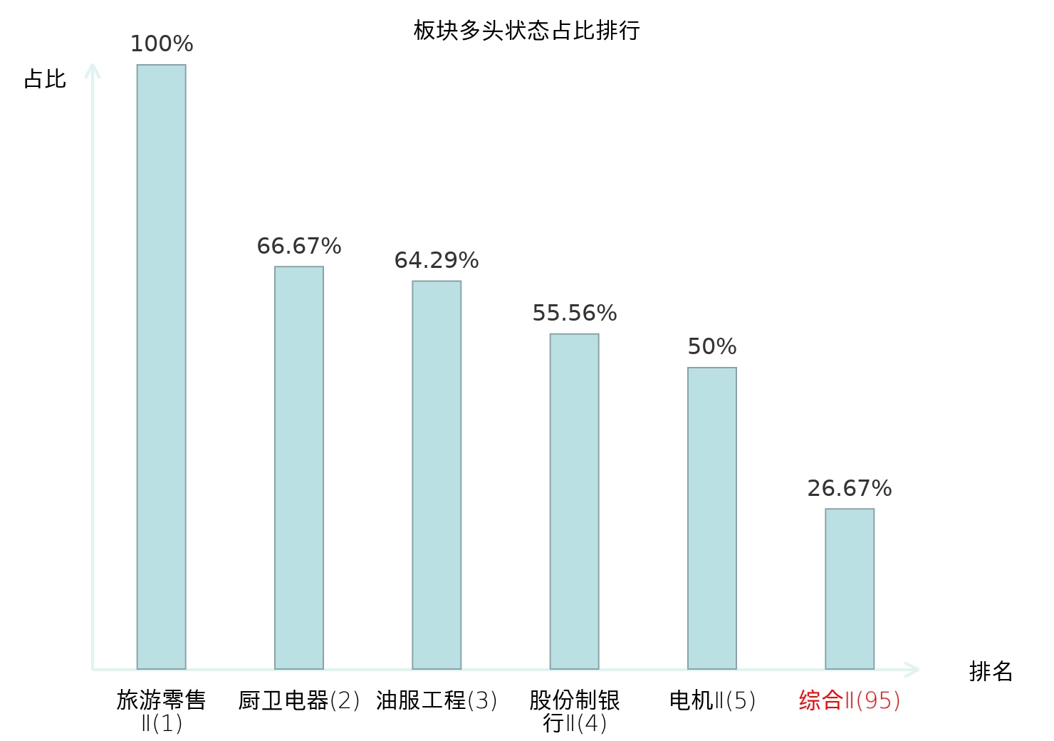 全市场所有行业板块中主力多头状态占比排名中,旅游零售Ⅱ板块位居第一。航海装备Ⅱ板块名次提升最快,较昨日上升78位。