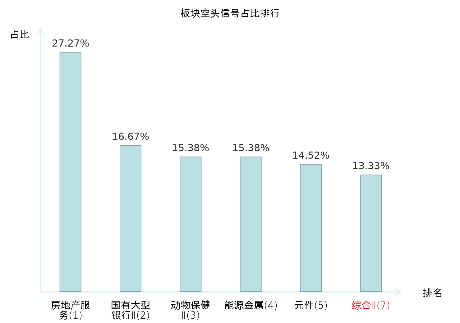 全市场所有行业板块中主力空头信号占比排名中,房地产服务板块位居第一。元件板块名次提升最快,较昨日上升122位。
