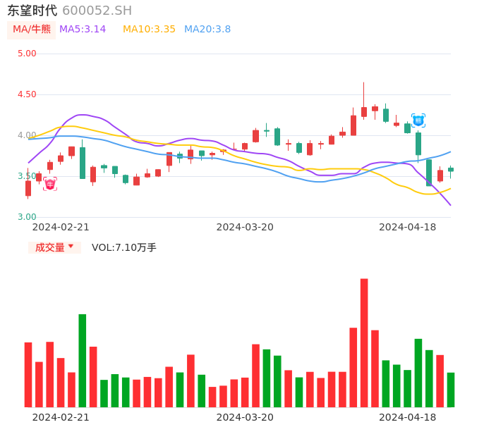 04月18日,东望时代收报3.56,股价涨幅-0.28%,成交金额2535.50万元,换手率0.84%。