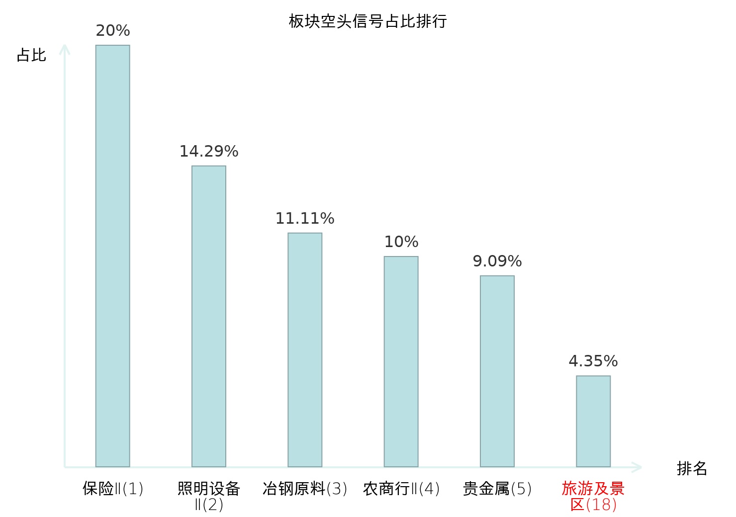 全市场所有行业板块中主力空头信号占比排名中,保险Ⅱ板块位居第一。医药商业板块名次提升最快,较昨日上升103位。