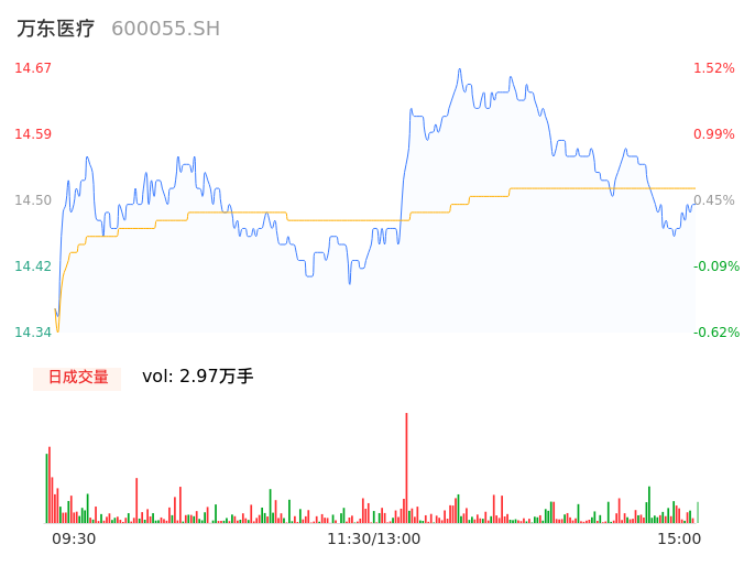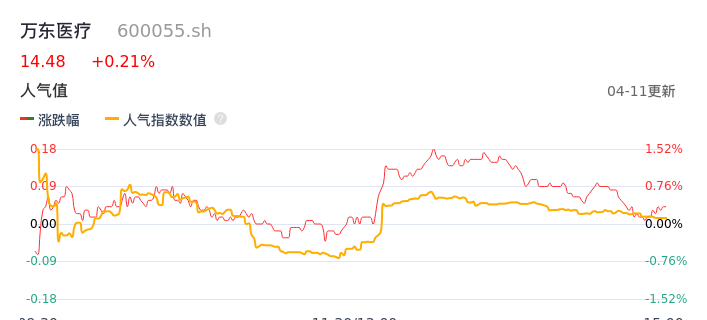 04月11日,万东医疗收报14.48,股价涨幅0.21%,成交金额4316.38万元,换手率0.55%。